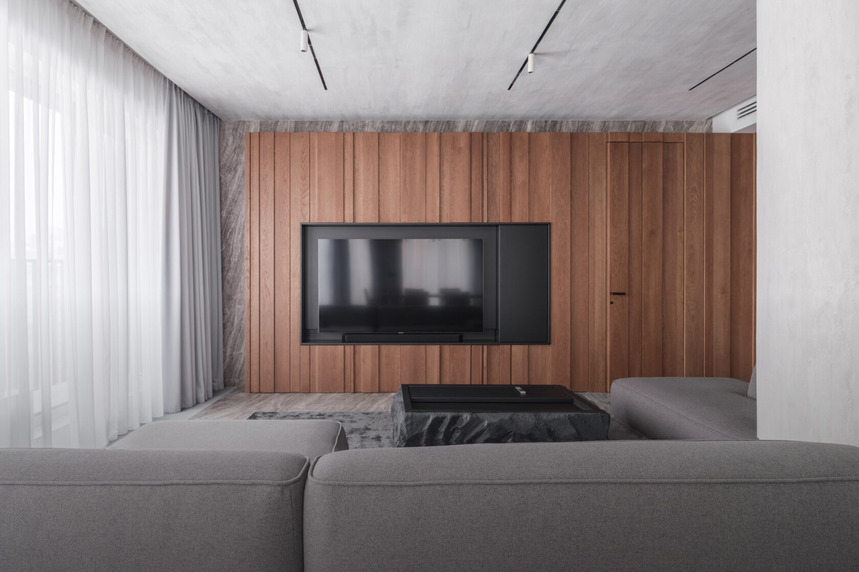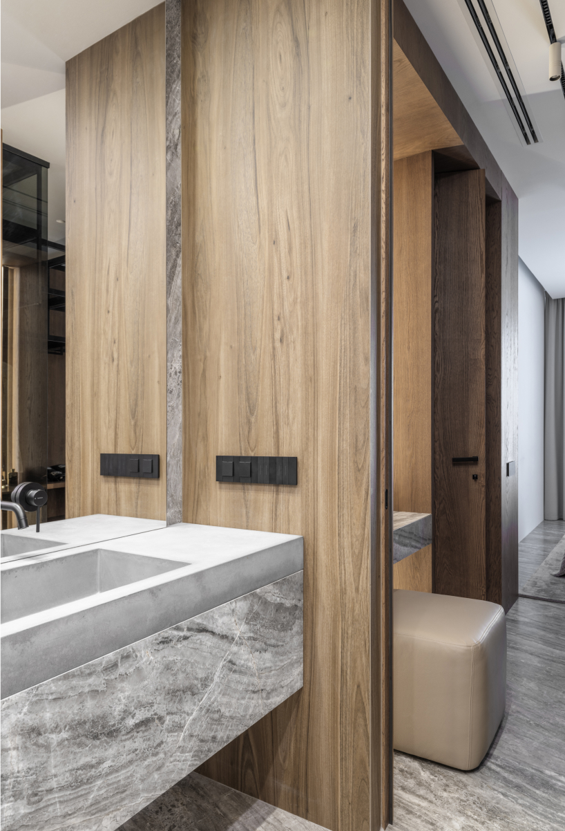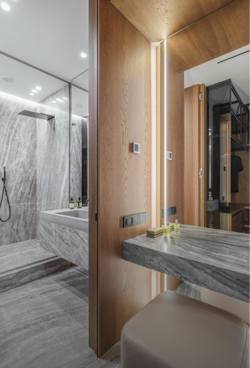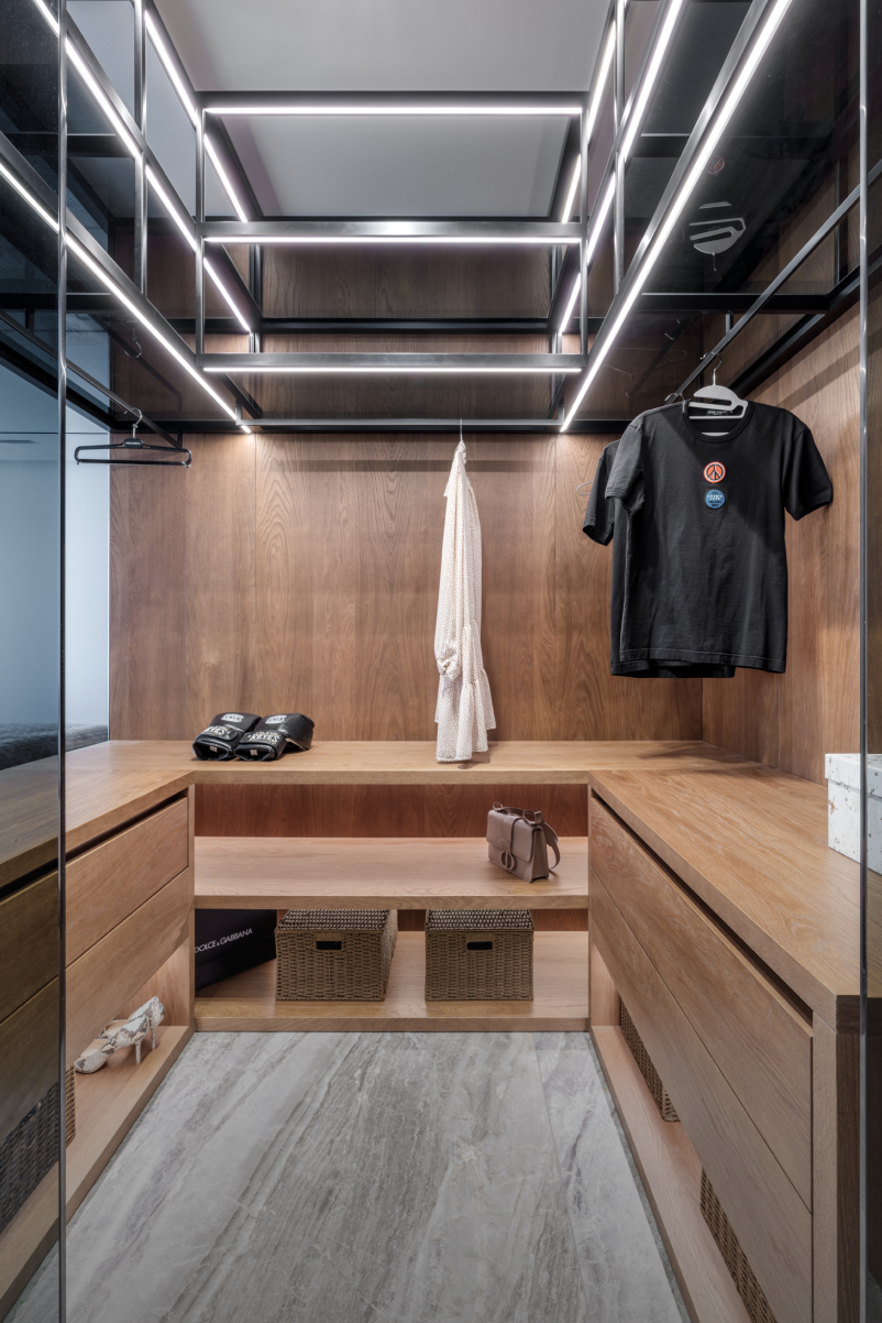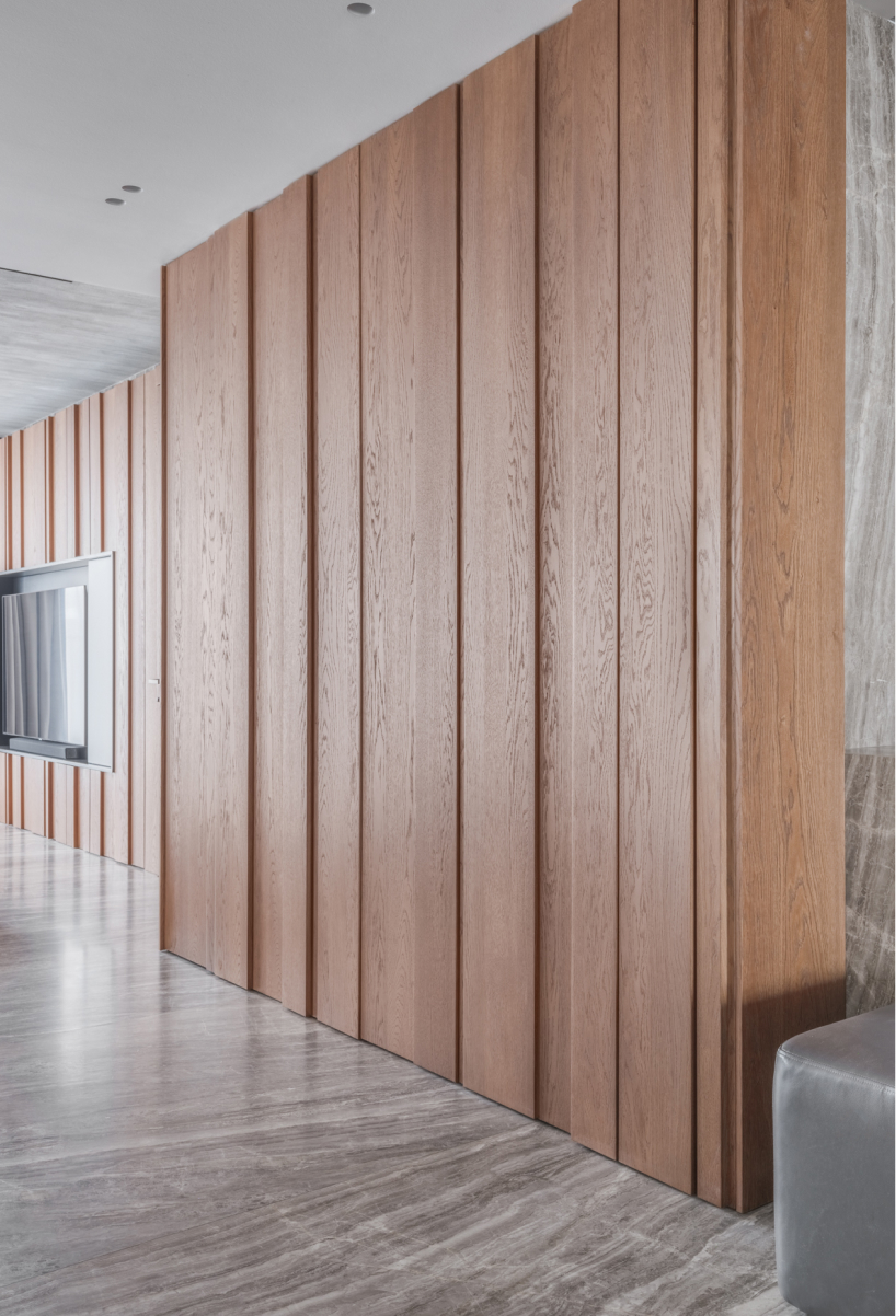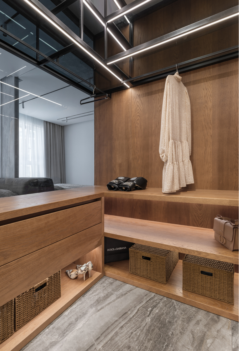 Стеновые панели и шкафы выполнены из шпона Дуба
