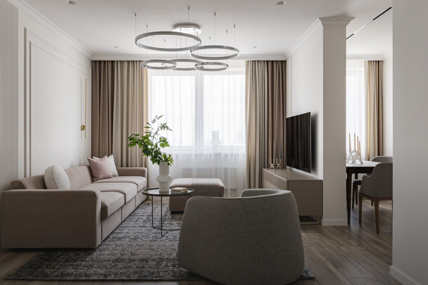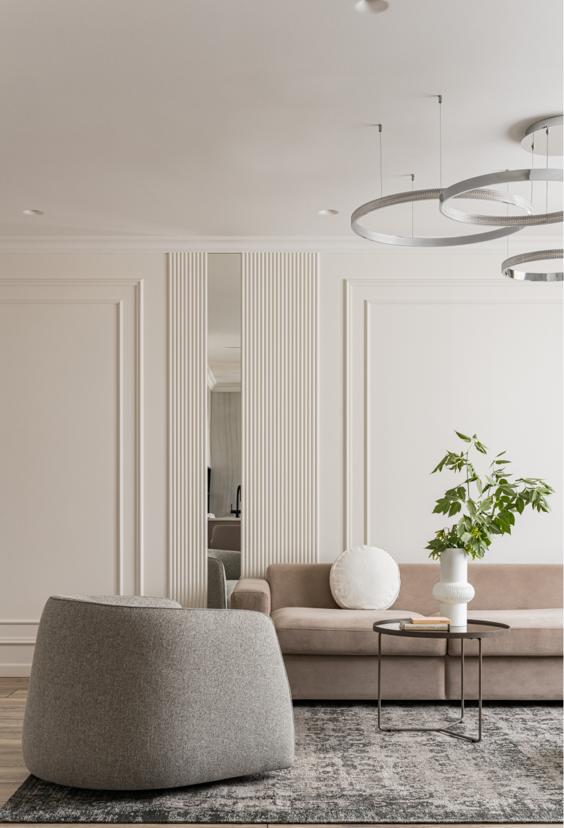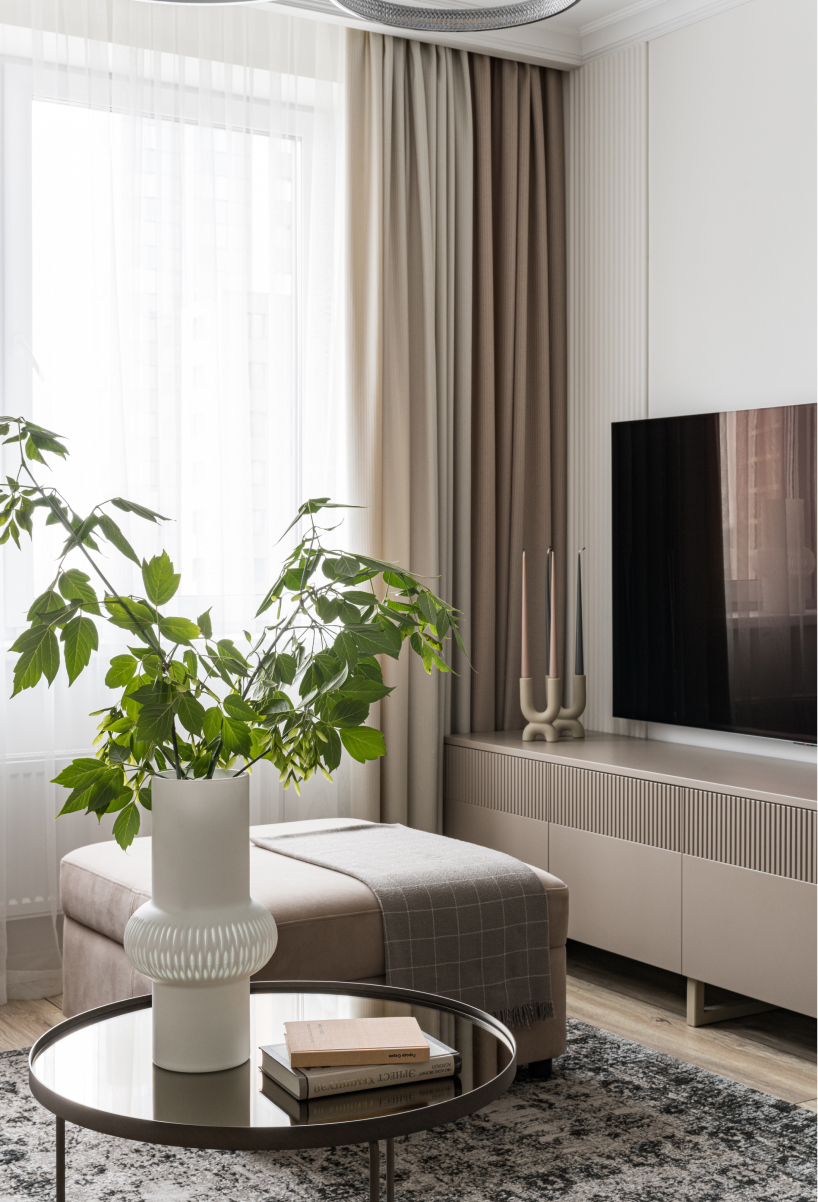 Для гостиной мы создали тумбу с фрезерованными фасадами