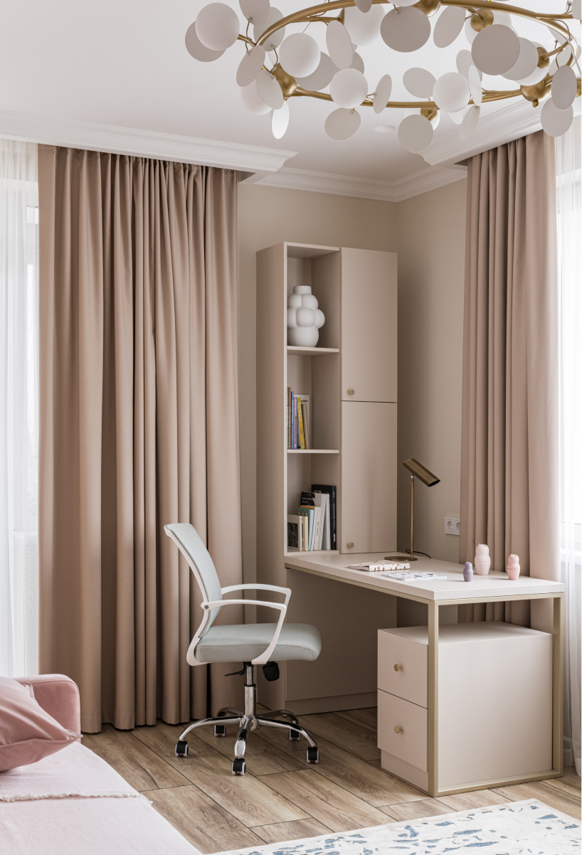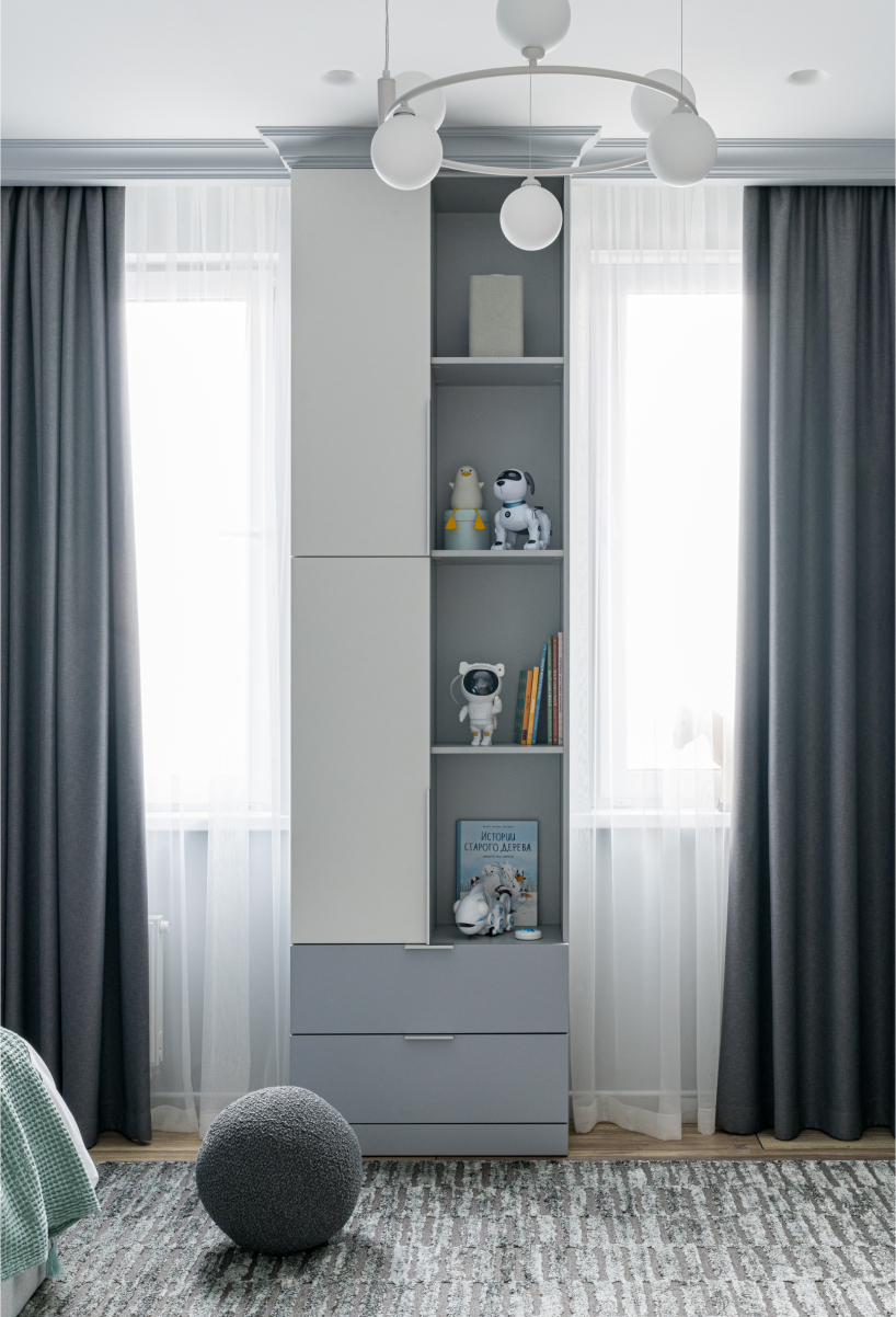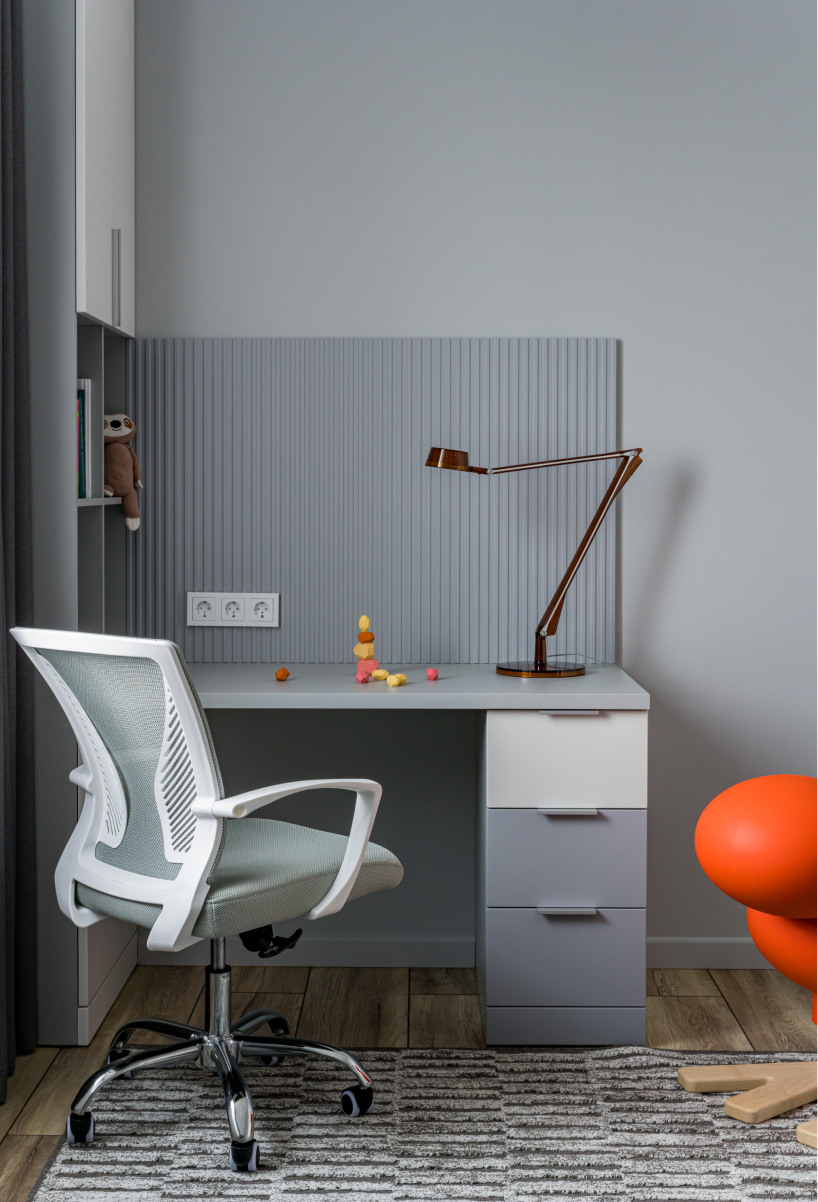Вся мебель выполнена в экологически безопасной пленке - такой материал идеально подходит для создания мебели в пространствах для детей